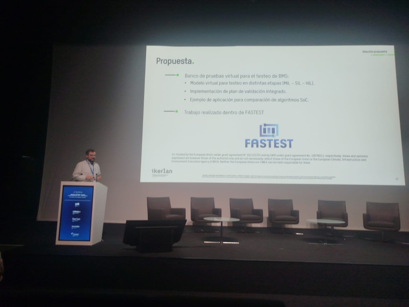 In October 1st, 2025, FASTEST project was featured at the MathWorks Industry Day with BRTA Technology Centres in San Sebastian. Our partner Iván Sanz (IKERLAN) delivered a presentation highlighting the project’s progress and main findings.